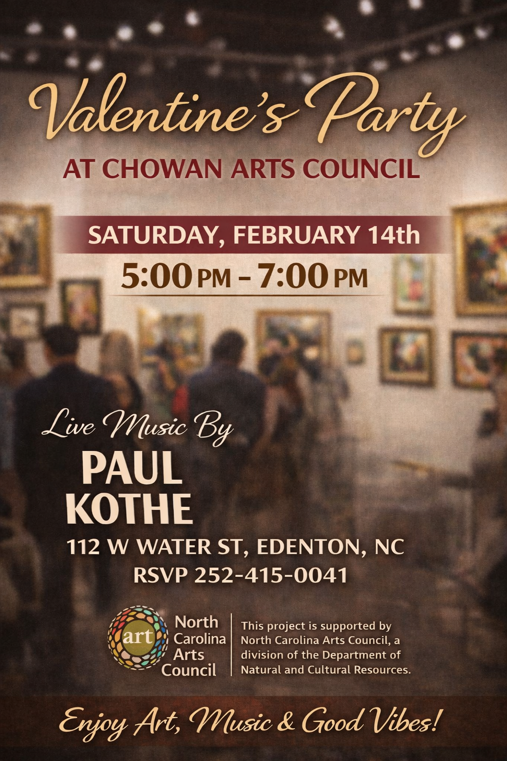 Valentine’s Day isn’t just for couples—it’s for anyone who loves art, atmosphere, and a great night out 💖 Join us at the gallery for an evening of creativity, conversation, and connection. Sip, stroll, and soak in the art while enjoying music by Paul Kothe and a vibrant, come-as-you-are vibe. Whether you arrive with a date, friends, or on your own, this is a celebration of all kinds of love—romantic, platonic, and self-love included. No pressure, no expectations—just good art, good company, good music and a little Valentine’s sparkle.
