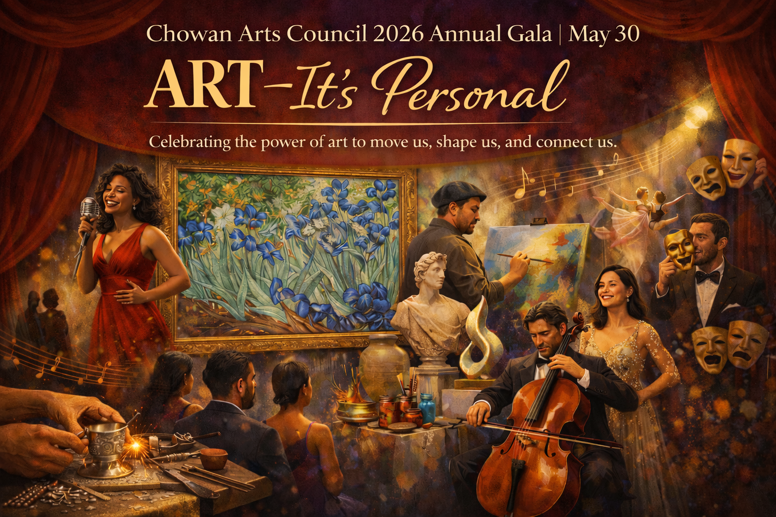 On May 30, the Chowan Arts Council’s Annual Gala will bring together our members, artists, supporters, community leaders, and arts advocates for an unforgettable evening centered around our theme: “ART – It’s Personal.”